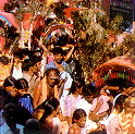 in a hypnotic trance to the rhythm of drums, devotees of Muruga