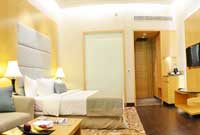 The premium positioning of the Executive Room, allows you to enjoy a panoramic view of lush green Gurgaon landscapes through full-length glass windows. Specially designed and built for business travelers, the room features all high-end amenities. The sizeable work space of the room has an extremely comfortable glass-top writing desk along with chairs, telephone lines and non-stop wi-fi high-speed internet access (six hours per day free of cost), so that you can always stay connected.
