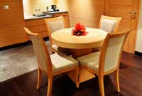 In addition to the 24/7 room service and in-room safe, you will also enjoy a daily turn down service. Wake up to the latest worldwide events with the morning newspaper delivered right to your room. Besides the daily breakfast facility, you can also relax and sink your teeth into fresh juicy fruits delivered daily to your room. The luxurious bathroom features shuttered windows so that you can enjoy the calmness of natural white light, while you have a relaxing bath to wash away all worries of your work life and hectic schedules.