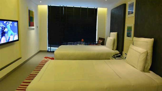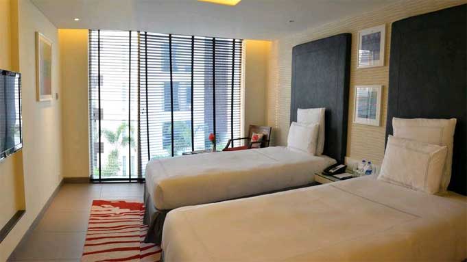 There are 75 such rooms. They come as twin beds or a double