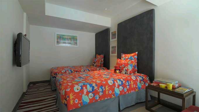 house twin beds or double beds. The designer beds are made