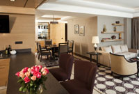 International renowned designer, Hirsh Bedner, created these spacious and very contemporary living and bed rooms. Each suite is equipped with a large flexible work station, high speed internet, LCD TV, Laptop sized electronic safe with in-built charging facilities, IP telephones, iPod docking stations and responsive climate control.