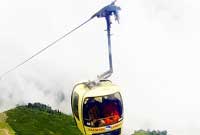 The Gulmarg Gondola, Asia's highest and longest cable car project, provides a thrilling ride from the the Gulmarg Meadow [2650 m] through pine-clad slopes to Kongdori [3050 m], and continues above the tree-line to Apharwat [3950 m].