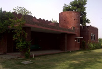 This Haveli's architecture is a harmonious blend of traditional punjabi village essence and Moghul influences. It has a large gate and high-outer walls surrounding an inner courtyard around which various rooms are built - which is typical of dwellings built by Punjabi landlords between late 19th and mid 20th century. Nanak-shahi bricks that are over 150 years old line the large iron gate entrance to the haveli. |