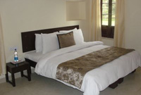 4. Banana: This room was orignally built for grain storage. It is the only room that does not have a courtyard facing window, but has views of the orchards, lawns, and banana trees on two sides. There is a connecting door to the Mango room, ideal for guests wanting two adjoining rooms.