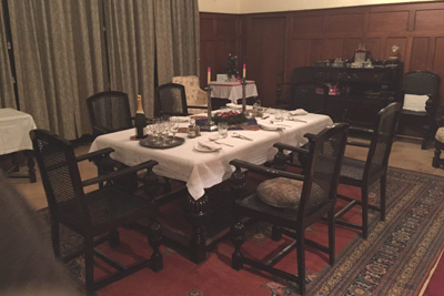 Furnishings are simple, almost Spartan, with colonial-style furniture and faded prints. Dinner was served in the parlor. With its Army & Navy Stores stoneware water filter, its orderly piles of patterned crockery (including Mabel Lucy Attwell children's plates, circa 1945) and vast soup tureens, this room would have made an impeccable set for The Jewel in the Crown. And the menu was pure Anglo-Indian; cream of vegetable soup, butter chicken and roast potatoes with three veg, followed by creme caramel.
