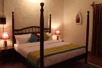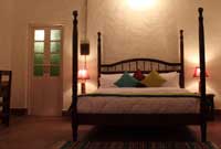 The most prominent feature of the bedroom is the imposing four-poster bed with luxurious mattress. There is a nice sitting area, a perfect spot to unwind, and a writing table if you are inclined to lift a writing device. There is an abundance of windows so as to let the air and light filter through and at the same time offer some enchanting views from within the privacy of the room. The elegantly fitted bathrooms have outdoor feeling as one wall is entirely made of glass that offers uninterrupted view of the sky.