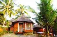 Kerala, South India consisting of Round thatched villas, each with a